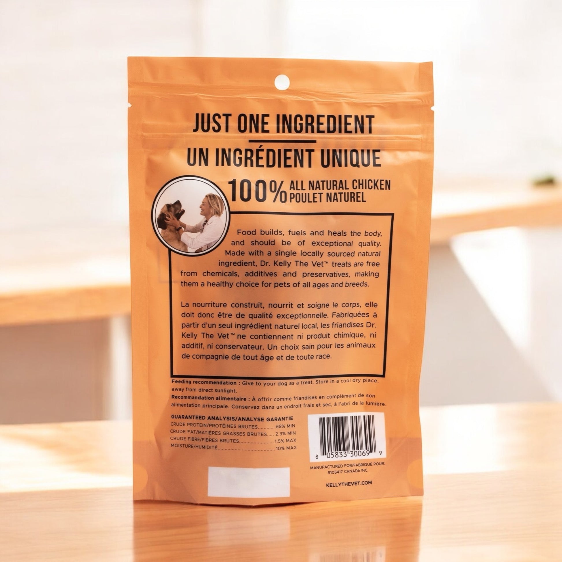 - Our 100% chicken all natural dog treats provides exceptional quality made from only a single ingredient without chemicals, additives or preservatives. These treats are as natural as they come as food is health.