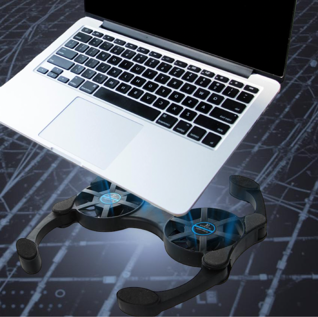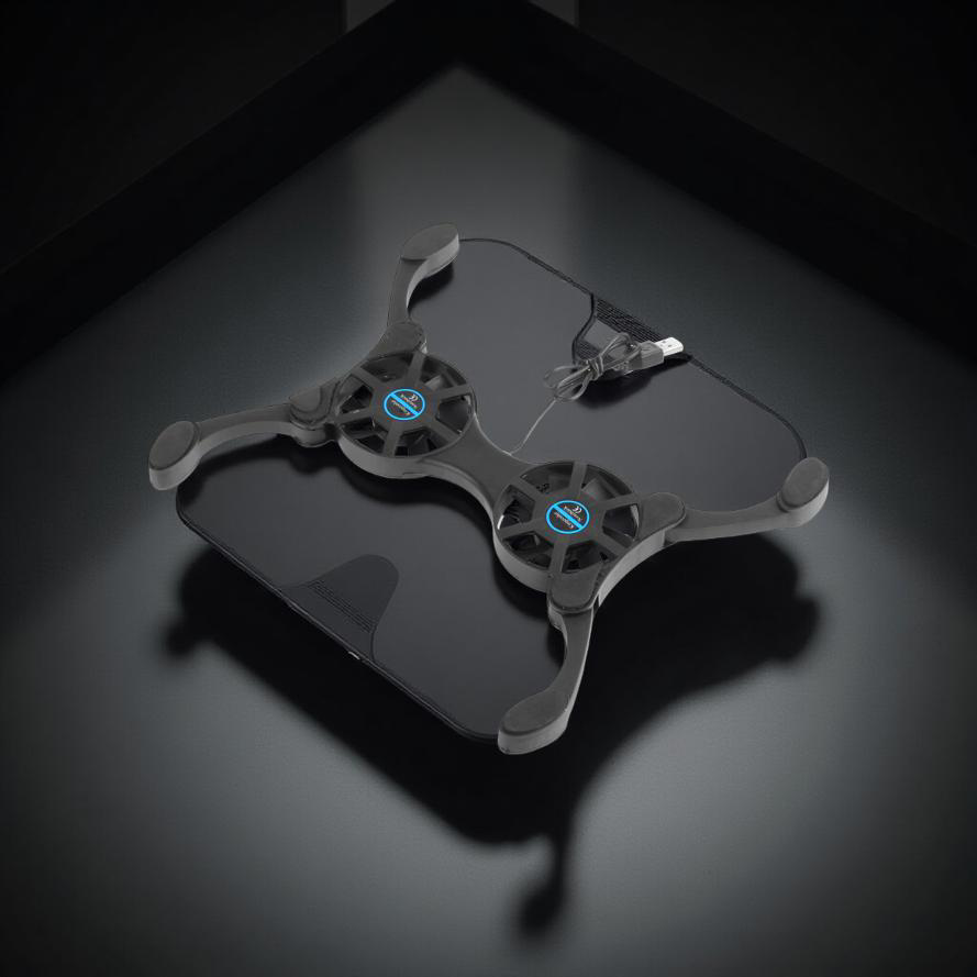 - Keep your laptop running cool and quiet wherever you go with this ultra-portable dual-fan cooling pad. Its sleek, ergonomic design, durable construction, and adjustable foldable arms make it the perfect companion for work, gaming, or travel.
