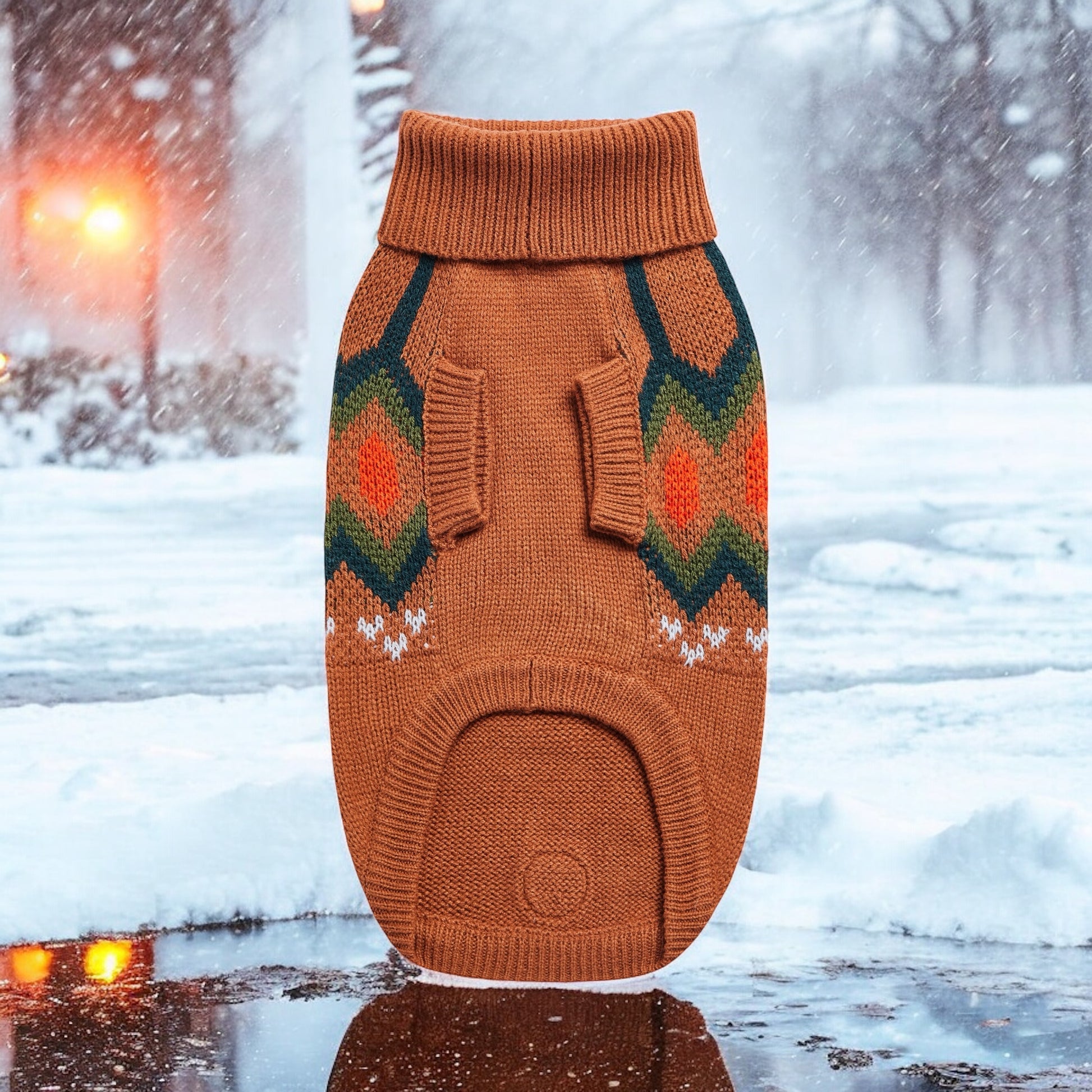 - The GF PET Heritage Sweater is fun and unique, with its’ native-inspired vintage design and warm color combos. This quality multi-knit turtleneck boasts a comfortable, sculpted unisex fit, secure ribbed arm holes and an authentic GF PET Logo Patch. A must-have style that all generations of dogs and owners will love!!
