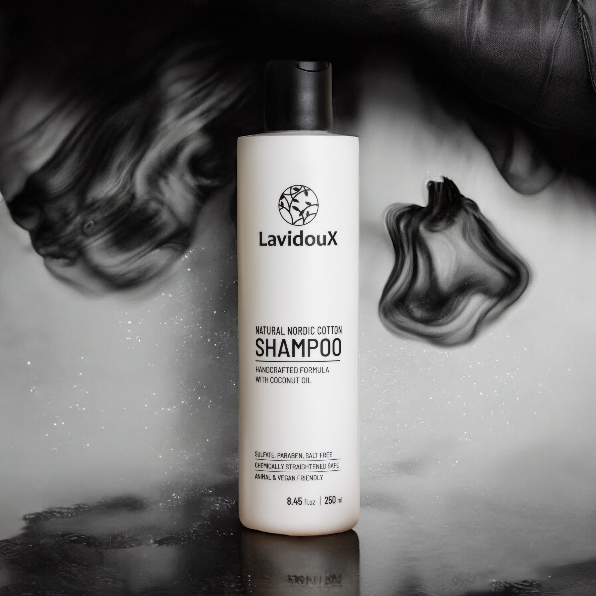 - Our gentle, nature-inspired shampoo cleanses deeply while maintaining your skin’s natural pH balance, leaving your hair soft, moisturized, and silky smooth. The infusion of mild Nordic Cotton Extract and Coconut Oil delivers essential hydration, protecting against dryness and scaling.